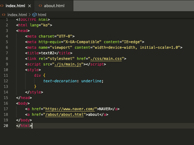 ** <link> : 외부 문서를 가져와 연결할 때 사용. (대부분 css 파일)