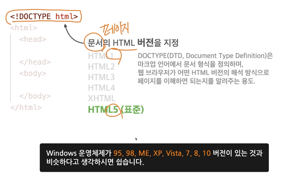 1. Doctype(DTD) : 문서의 HTML 버전 지정