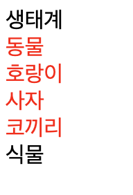 부모요소 animal 하단에 있는 자식요소 element 들의 색상이 변하는 것을 볼수있다.