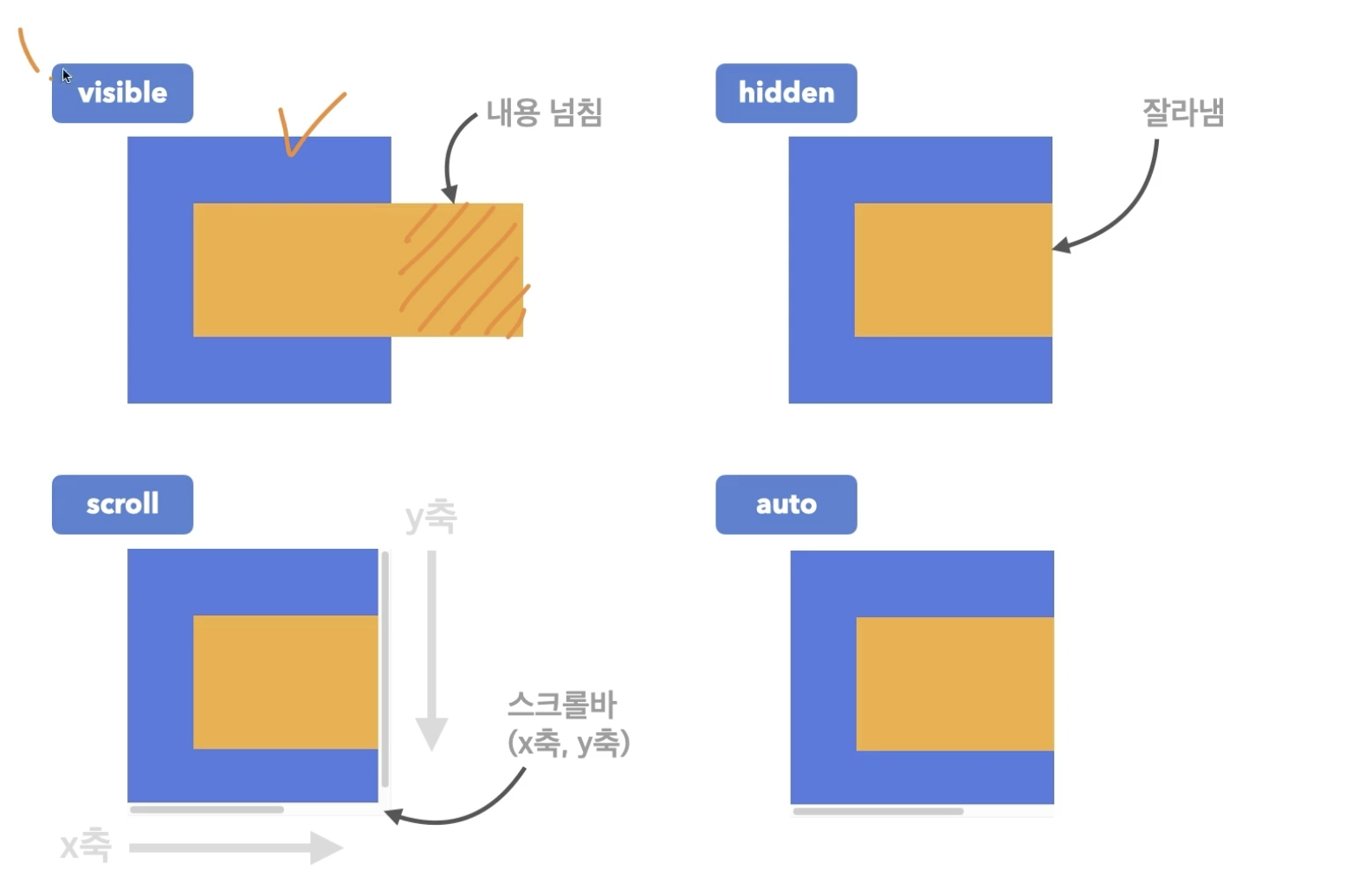 - scroll : 넘침내용을 잘라내서, 스크롤로 표현