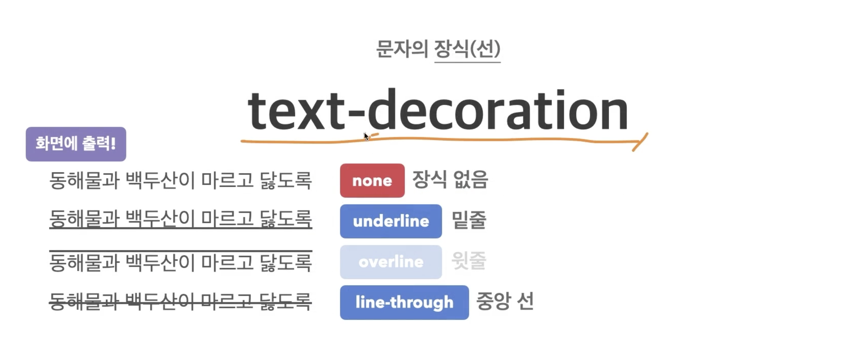 - text-align : 문자의 정렬 방식 (left, right, center, justify(양쪽정렬))