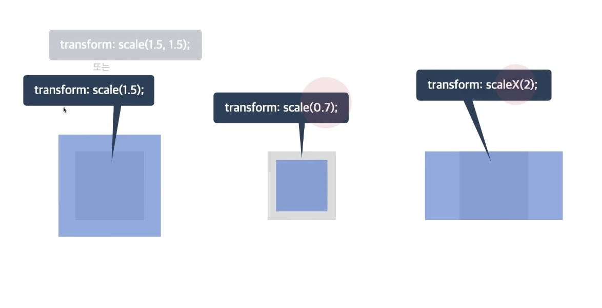 | 이동(translate) | 확대(scale) | 회전(rotate) | 기울이기(skew) | |