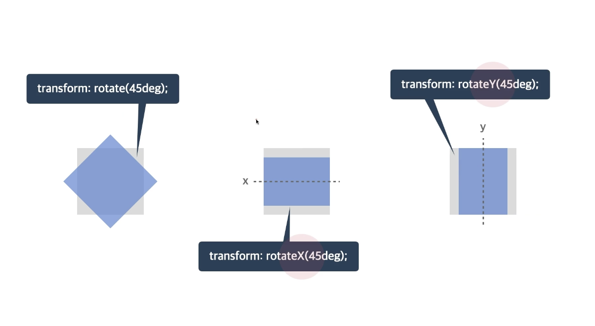 | y축 변환 | translateY(y) | scaleY(y) | rotateY(angle) | skewY(angle) |