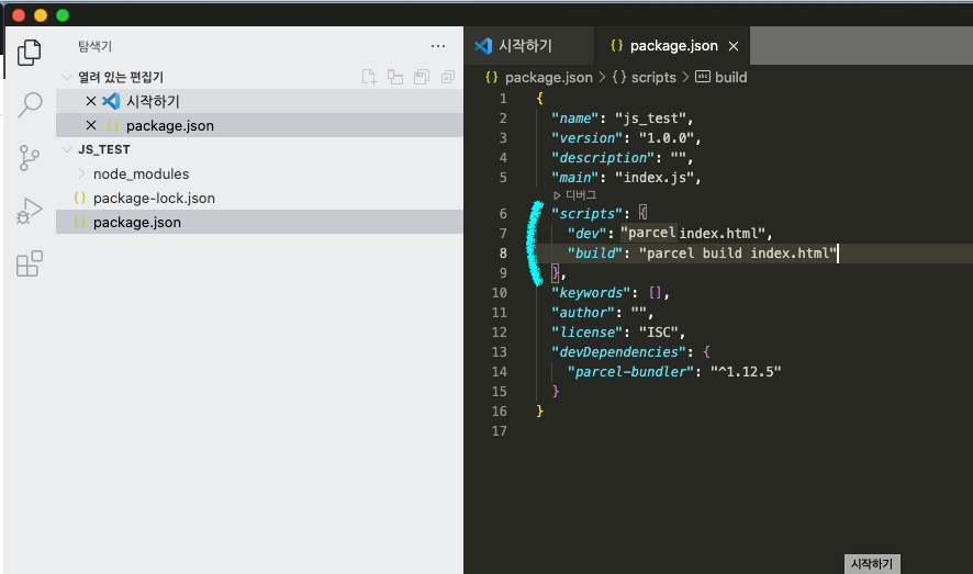 3. 위와 같이 작업 후에, package.json에 아래와 같이 스크립트를 넣어 명령어를 설정해줍니다.